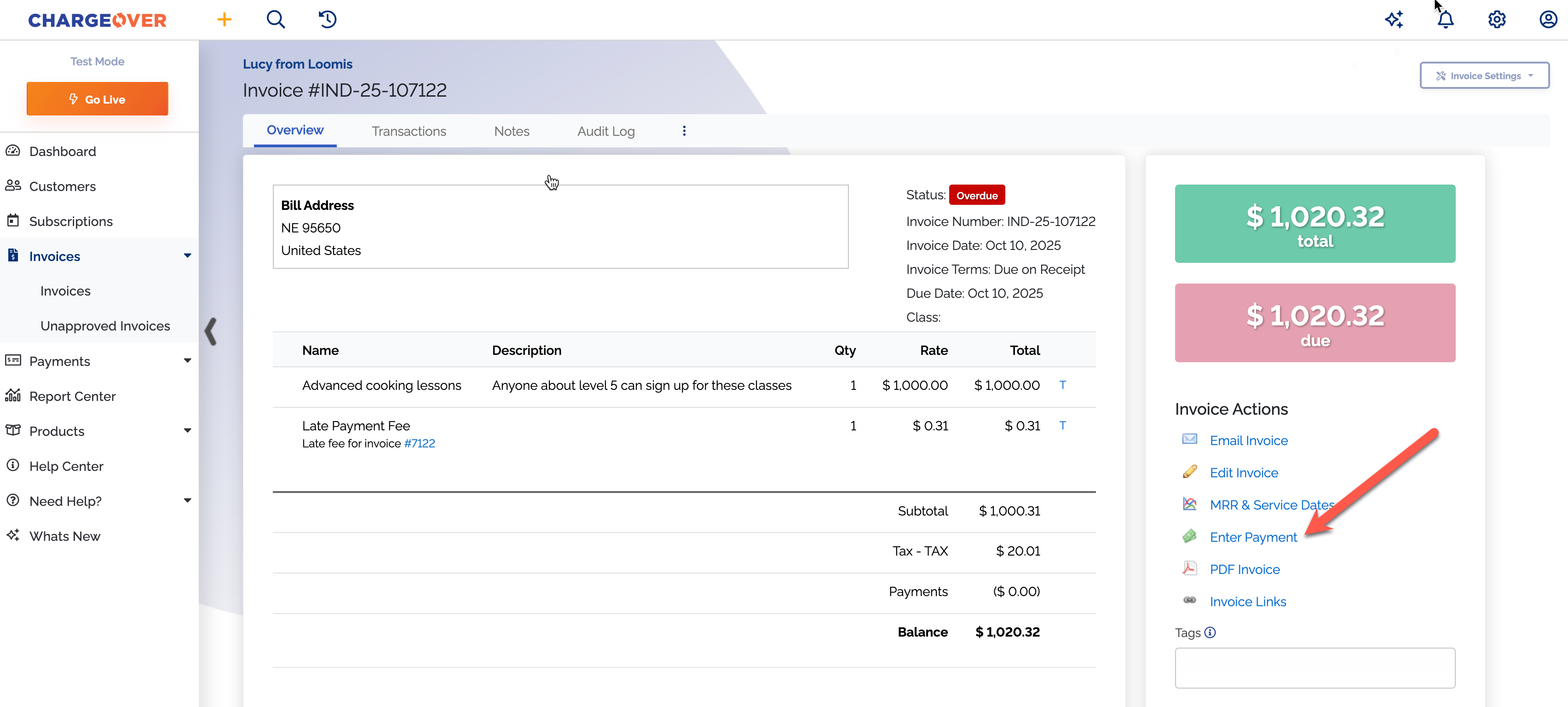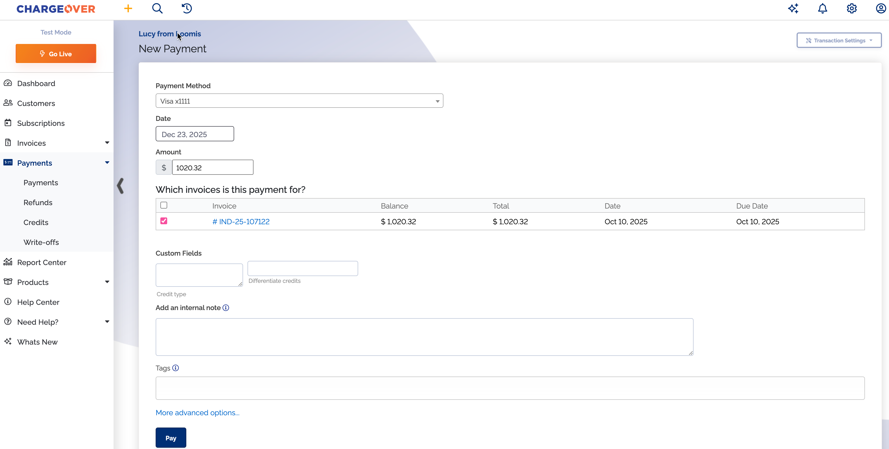Paying an invoice in ChargeOver