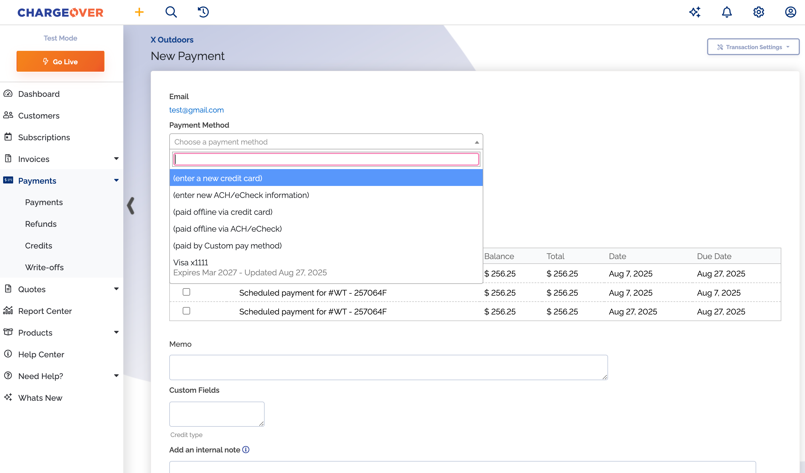 This article should help explain how ChargeOver handles automatic payments and newly entered credit cards that pay for customers subscriptions.