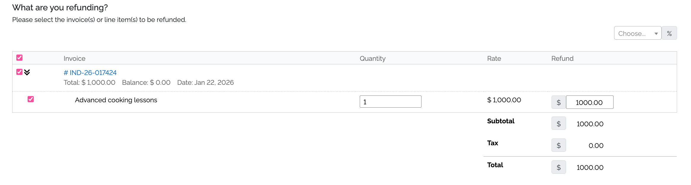 - If you prefer, you will have the option of filling in the quantity or amount you are refunding, per line item