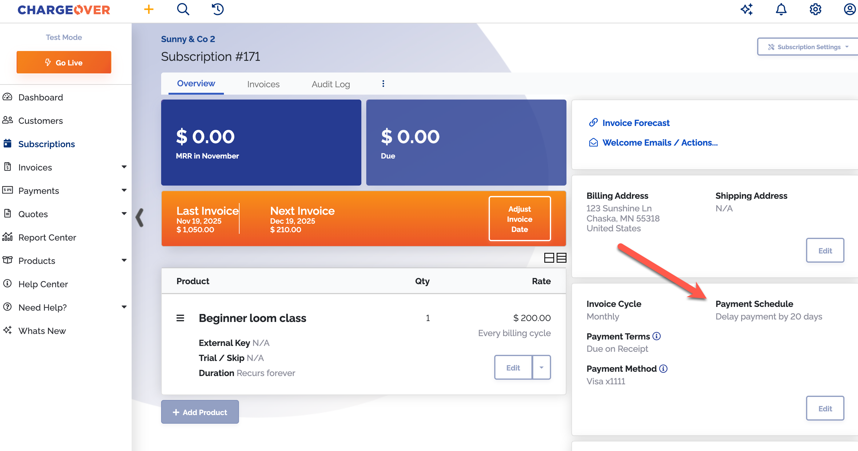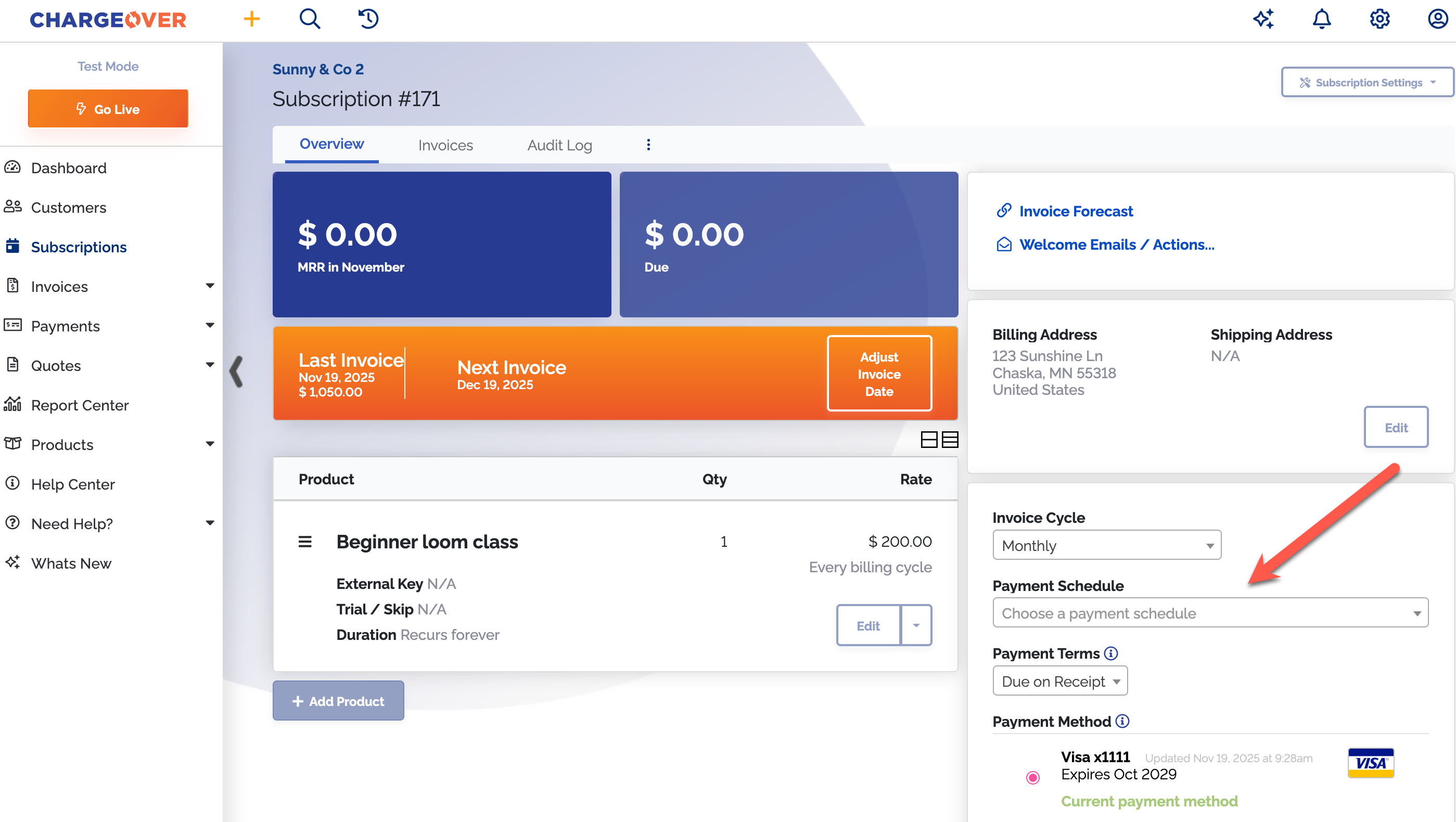 Change or add a payment schedule on a subscription